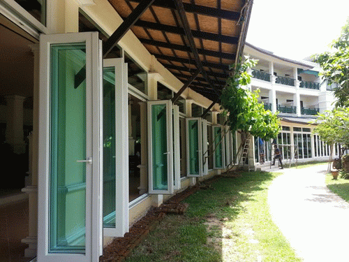 การติดตั้งประตูบานเฟี้ยมหลายๆ บานประตู ทำให้ตัวอาคารเปิดรับลมธรรมชาติได้แบบเต็มที